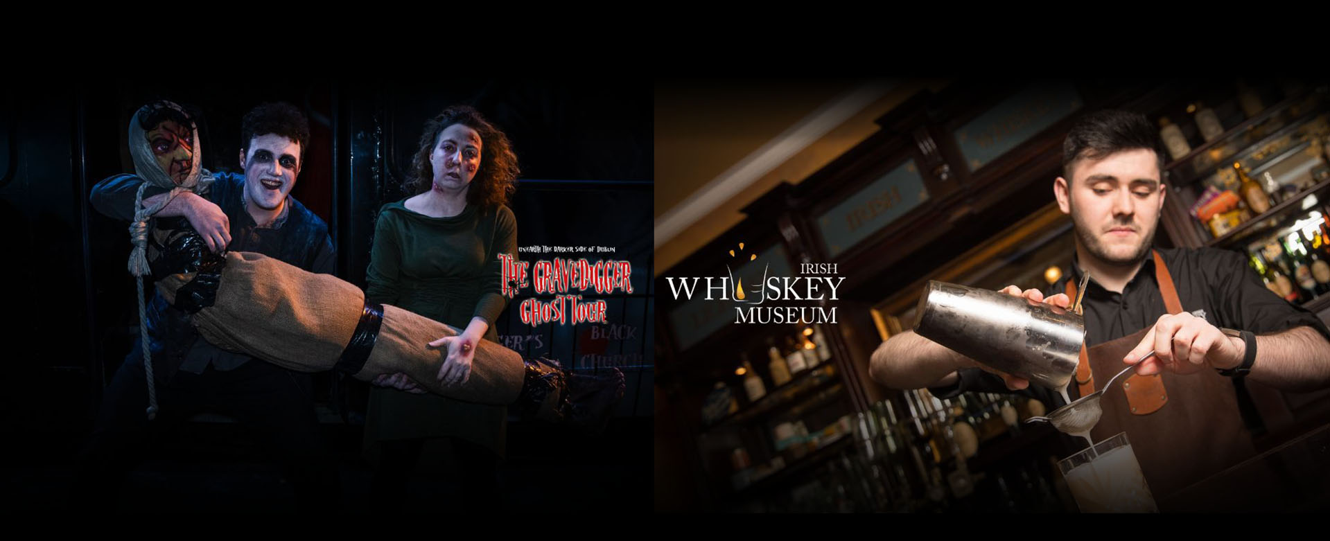 You will experience our beloved Gravedigger Ghost Bus Tour, where our actors will take your group through the years with their dark stories about Dublin. We will stop at St Audeons, Kilmainham Jail, Glasnevin Cemetery and The Gravedigger Pub, famous for having the best Guiness in the city. We will return to the first stop where the actors will take you to the Whiskey Museum, where the event will continue.